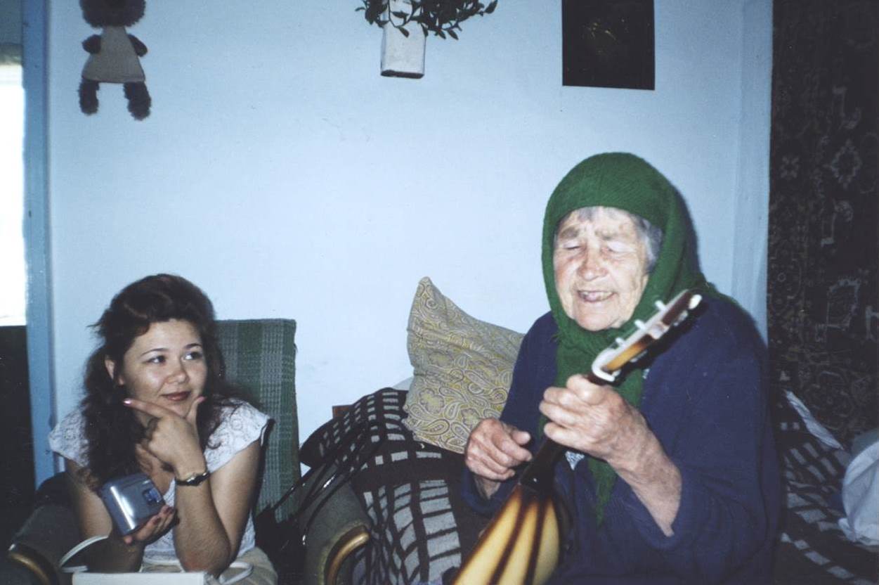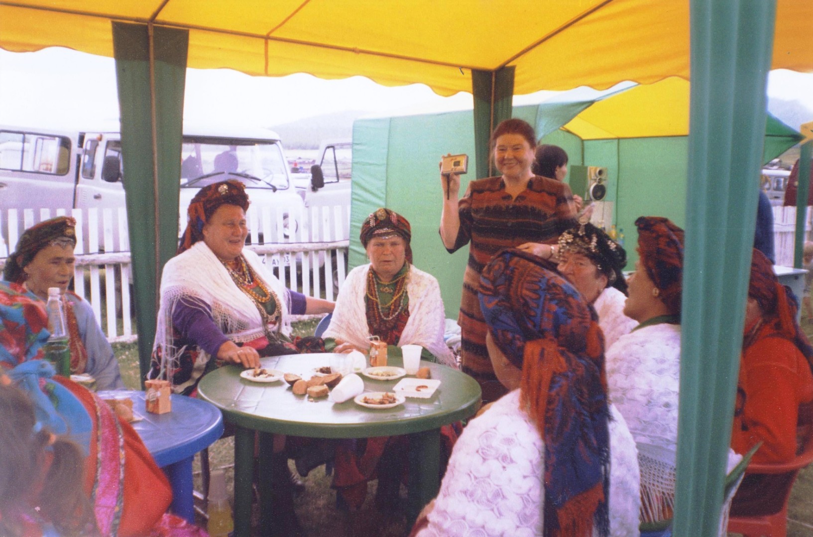 Фото 4. Доктор филологических наук Р.П. Матвеева с исполнительницами фольклорных произведений семейских. с. Хасурта Хоринского р-на. 2004 г. Фото Кушнаревой Л.Л.